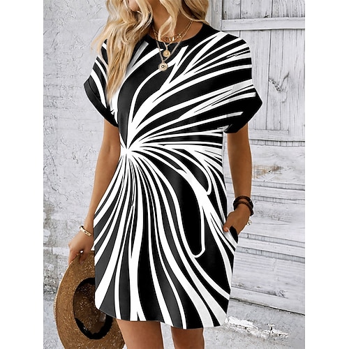 Per donna Mini Abito Abito a Tubino Vestito T-Shirt Abito Estivo Casual Quotidiano Ferie Data Vestibilità comoda Grafico Geometrico Manica Corta Girocollo Blu Nero Rosa Viola Estate Primavera