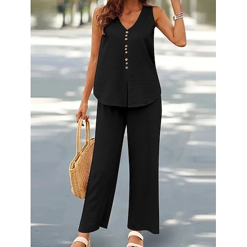 Per donna Set di Pantaloni Senza Maniche Scollo a V Semplice Moda Streetwear Casuale Quotidiano All'aperto Nero Giallo Blu Estate Vestibilità comoda