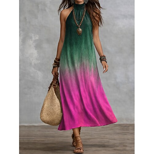 Per donna Abito maxi Vestito Casual Vestito in Chiffon Vestito a ruota Abiti Boho Chic Bohemien Vacanza Tropicale Spiaggia Ferie Data Vestibilità comoda Ombre Grafico Senza Maniche All'americana Blu