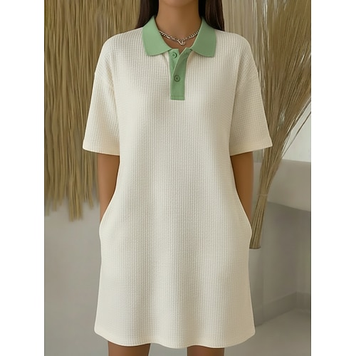 Per donna Abito al ginocchio Abito a Tubino Abito scozzese Classico Quotidiano Weekend Vestibilità comoda Blocco di colori Manica Corta Colletto a Camicia Bianco Verde chiaro Arancione Azzurro Estate