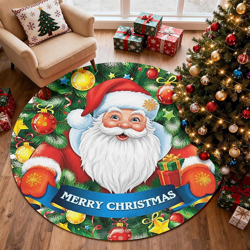 Santa Claus Round Area Rug For Living Room And Bedroom, Faux Cashmere Xmas Holiday Carpet, Soft Non-Slip Machine Washable Rug, Festive Decorative Floor Mat, 4ft