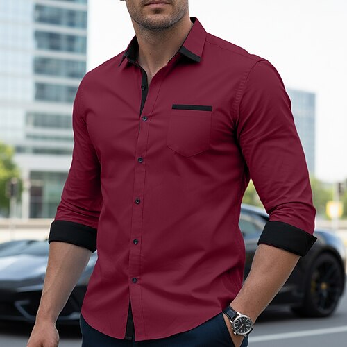 Per uomo Camicia Camicia elegante Camicia button-down Blocco di colori Quotidiano Affari Blu chiaro Nero Bianco Rosa Manica Lunga Collo ripiegato Tutte le stagioni Abbigliamento Patchwork