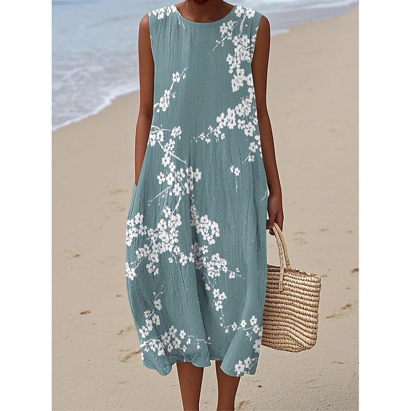 Women's Midi Dress Sundress Shift Dress A Line Dress Vacation Casual Boho Going out Beach Loose Fit Floral Graphic Sleeveless Crewneck Pink Purple Green off-white Summer Spring
