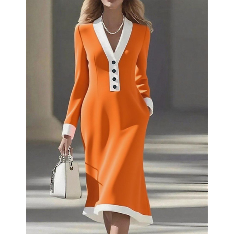 Women's Midi Dress A Line Dress Elegant Vacation Casual Work Street Date Regular Fit Solid Color Long Sleeve V Neck Blue Black White Red Spring Fall Winter