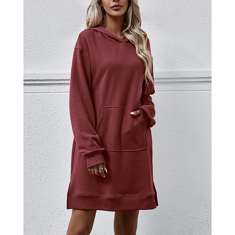 Women's Midi Dress Hoodie Dress Casual Dress Fashion Modern Daily Going out Weekend Regular Fit Plain Long Sleeve Hooded Pink Burgundy Purple Rose Red Spring Fall