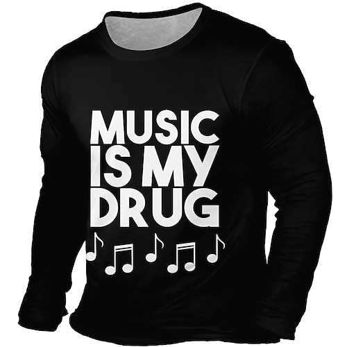 Herren Musik Lustiger Slang T Shirt Langarm T-Shirt 3D-Druck Rundhalsausschnitt Hemd Mode Täglich Basic Lässig Täglich Straße Blau Schwarz Rote Sommer Frühling Bekleidung S M L XL XXL XXXL