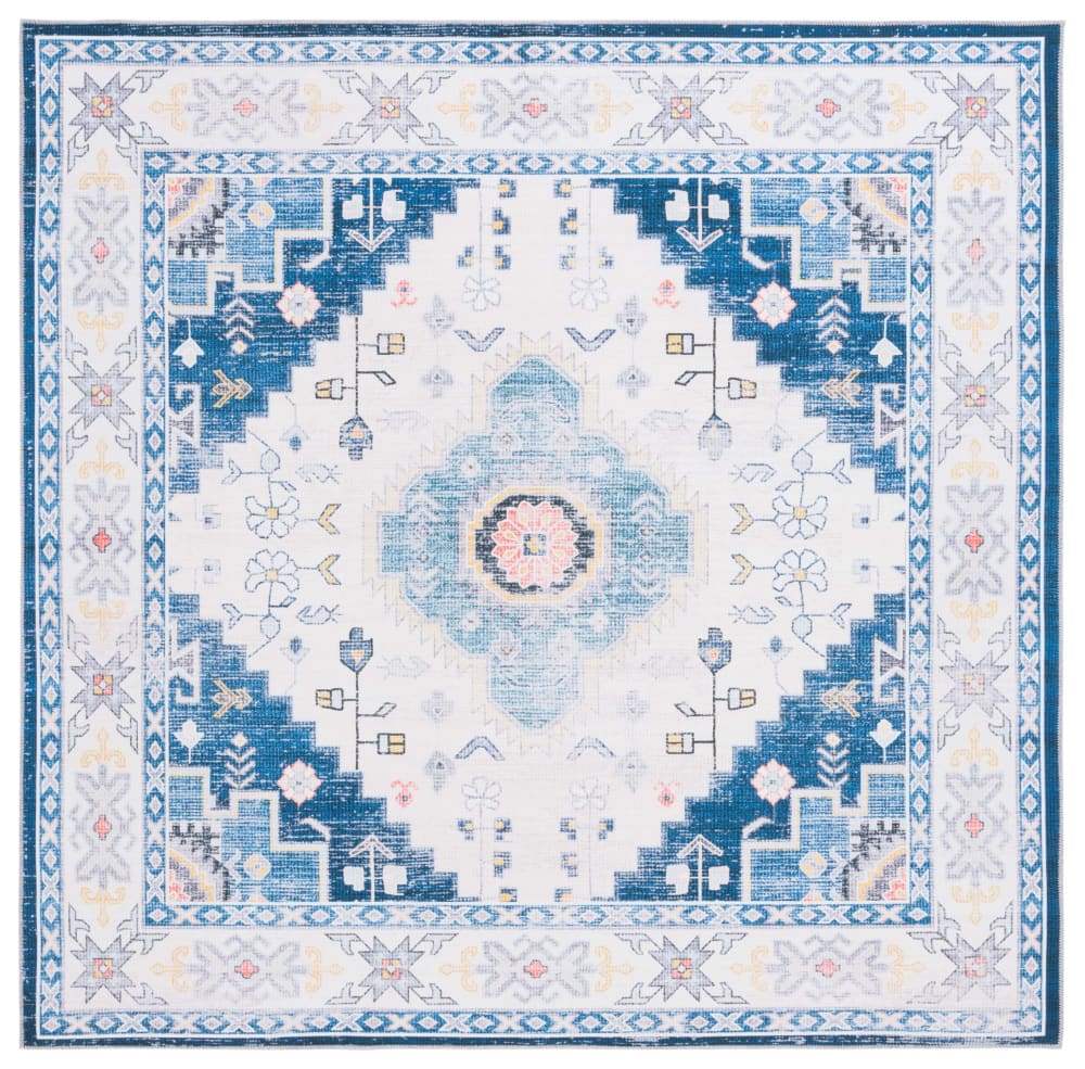 Tappeto Poliestere Blu Navy/Avorio 183 X 183 cm