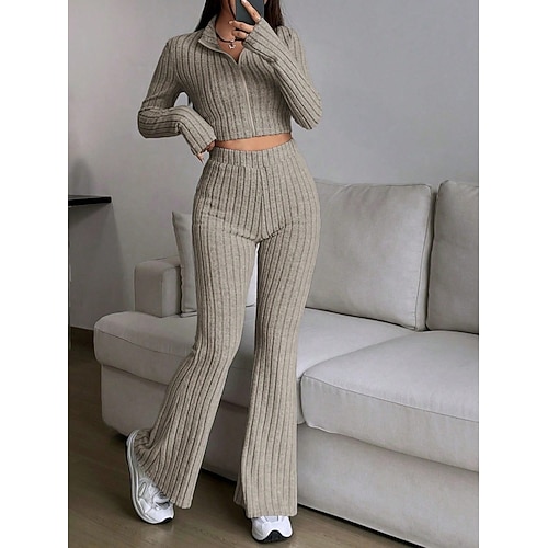 Per donna Moda Streetwear Set di Pantaloni Bolero Top Manica Lunga Colletto a Camicia Leopardo Cerniera Stampato All'aperto Casuale Quotidiano Nero Cachi Grigio Autunno Vestibilità regolare