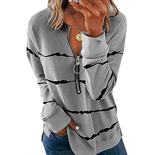 Per donna Maglietta Grafico Geometrico Vintage Moda Casual Manica Lunga Girocollo Top Regolari Quotidiano Cerniera Stampato Nero Rosso Blu Viola Marrone Autunno Inverno