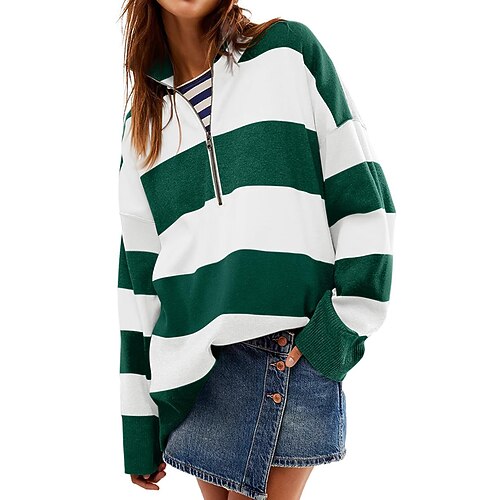 Per donna Blusa A righe Tropicale Elegante Casual Manica Lunga Girocollo Top Regolari Quotidiano Ferie Uscire Patchwork Nero Verde Grigio Primavera Autunno Inverno