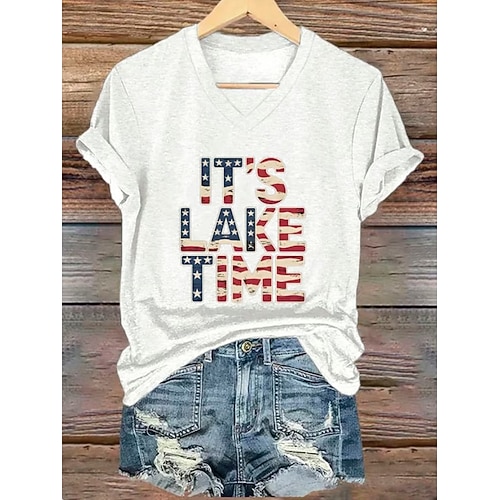 Maglietta patriottica da donna grafica bandiera vintage elegante classica a manica corta girocollo regolare top per quotidiano weekend stampa nero bianco blu navy blu blu reale