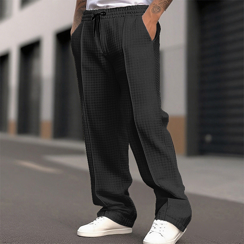 Men's Sweatpants Joggers Trousers Waffle Pants Pocket Elastic Waist Drawstring Plain Comfort Sports Outdoor Daily Fashion Casual Black White Micro-elastic