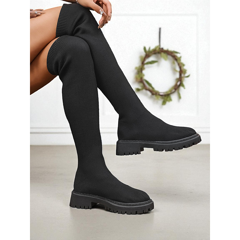 Women's Red Over-the-Knee Boots with Chunky Non-Slip Soles, Stretchy Sock Style Fashion Winter Booties for Casual Outfits, Christmas Parties Streetwear