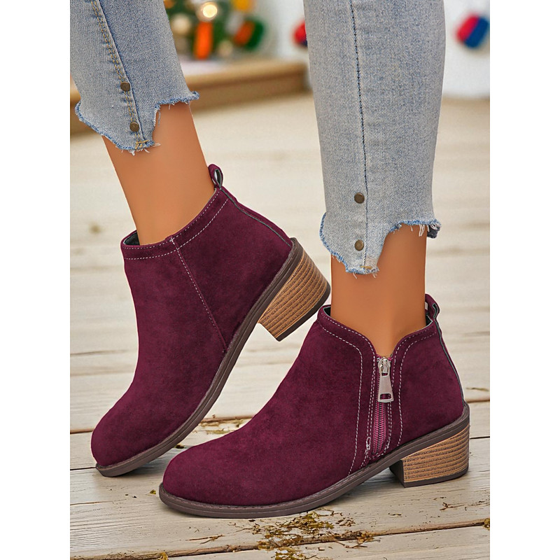 Women's Red Zip-Up Ankle Boots - Stylish Faux Leather Booties with Block Heel for Christmas, Casual and Work Wear