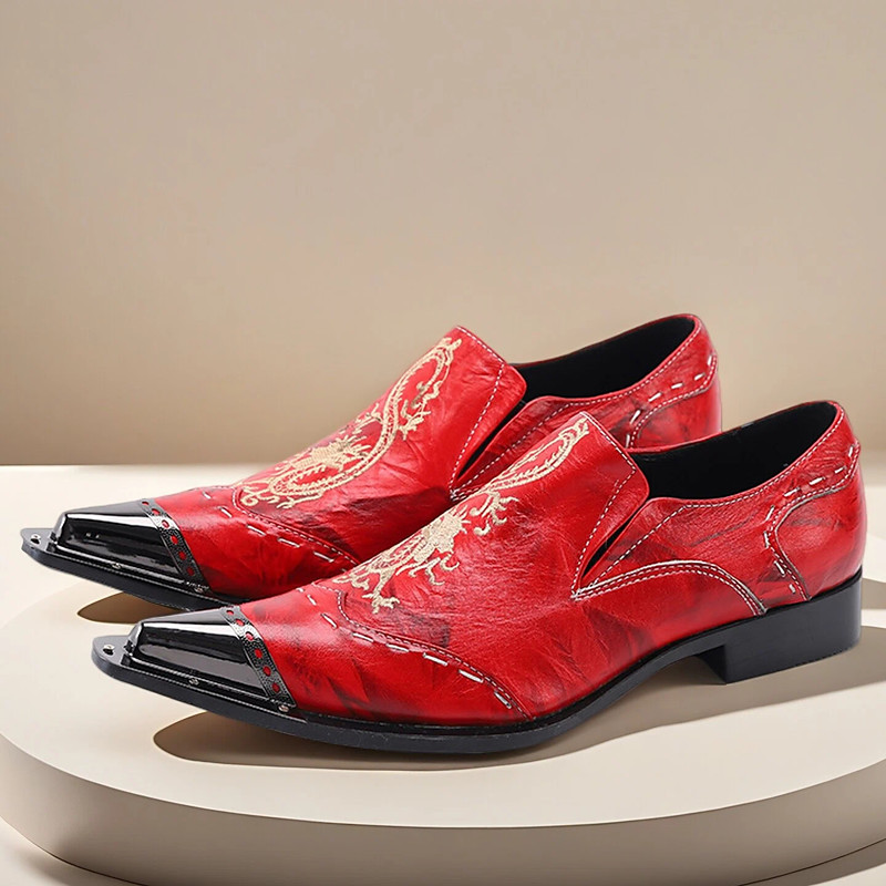 Men's Red Crocodile-Patterned Leather Boots with Silver Accent – Sophisticated Christmas Footwear for Holiday Festivities