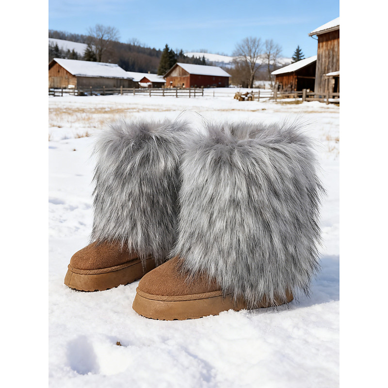 Women's Red Faux Fur Winter Boots – Cozy Snow Boots with Soft Lining, Comfortable for Winter Walks and Cold Weather Casual Wear