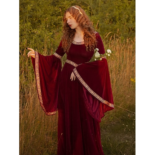 Retrò Vintage Medievale Rinascimento Vestito Strega Vichingo Straniero Streghe Elfico Costume Per donna Ragazze Celtico Reale Notte di Valpurga Halloween Carnevale Mascherata Festa / Sera Bambini
