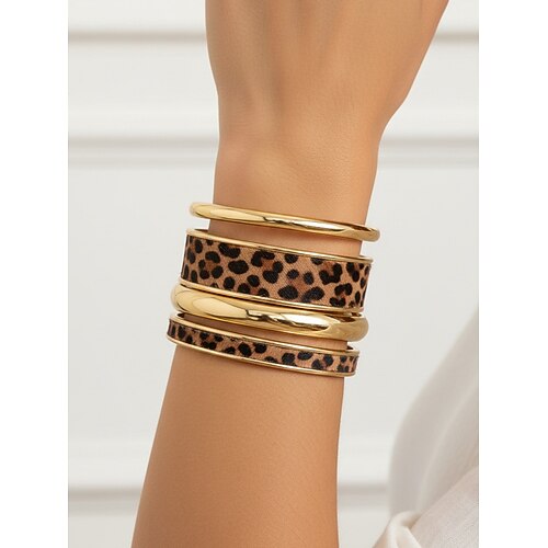 braccialetti da donna in lega color oro con stampa leopardata – set da 4, elegante design con stampa animalier, perfetti per un abbigliamento casual e da sera