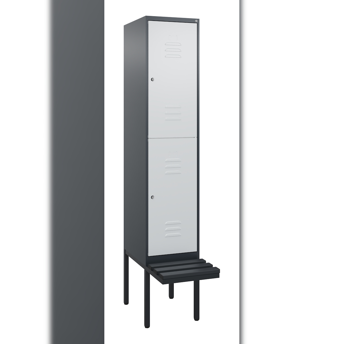 C+P Spind Classic PLUS, Kunststoff schwebende Sitzbank, 2 Abteile, HxBxT 212x40x82cm, Zylinderschloss, Anthrazit/Hellgrau von PROREGAL