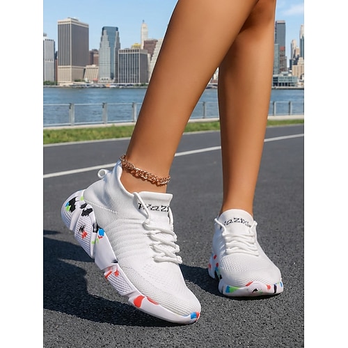 Scarpe da corsa da donna bianche in maglia – scarpe sportive Flyknit leggere e traspiranti, stile sportivo casual moderno per donna, perfette per correre, camminare, allenarsi in palestra e per l'uso