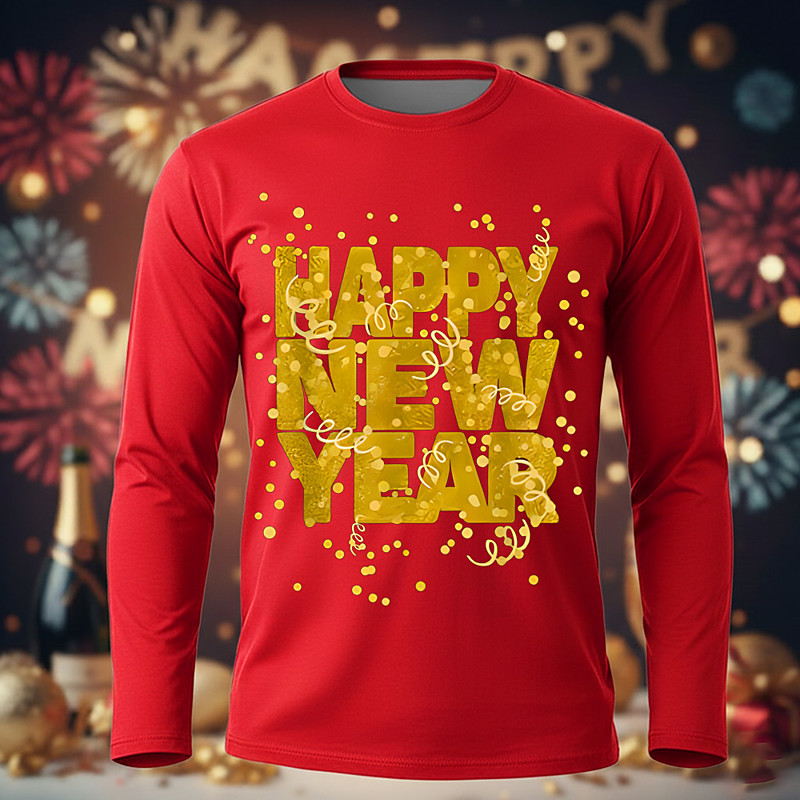 New Year Men's Happy New Year Fireworks T Shirt Long Sleeve T shirt 3D Print Crew Neck Shirt Exaggerated Designer Artistic Party Street Club Blue Black Red Fall Winter Clothing Apparel S M L XL XXL