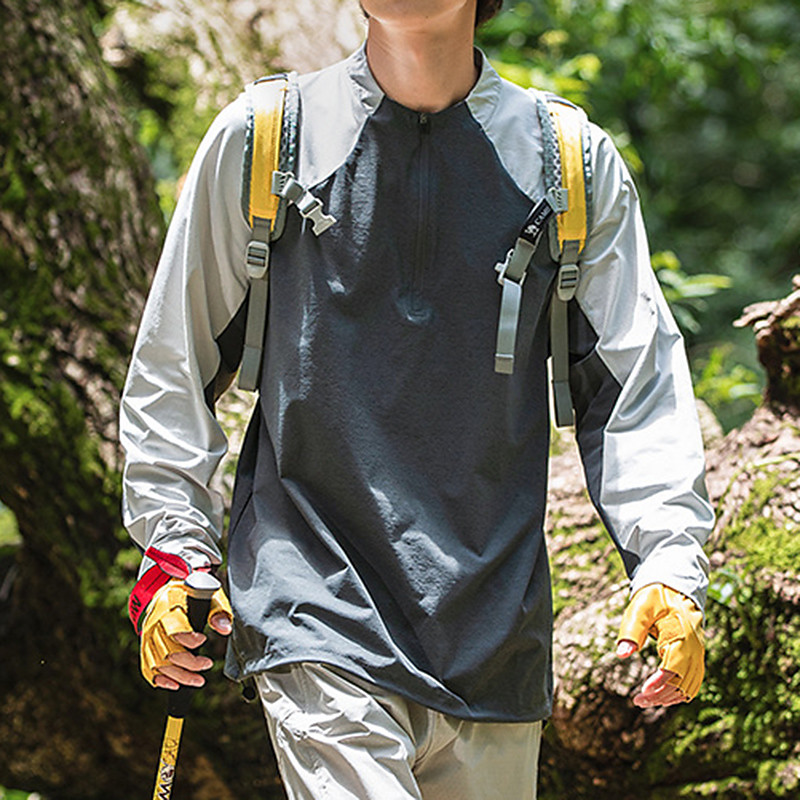 Men's Hiking Shirt Quarter Zip Shirt UV Protection Shirt Long Sleeve Top Outdoor UV Sun Protection Quick Dry Polyester Patchwork White Blue Grey Tennis Camping / Hiking / Caving Running