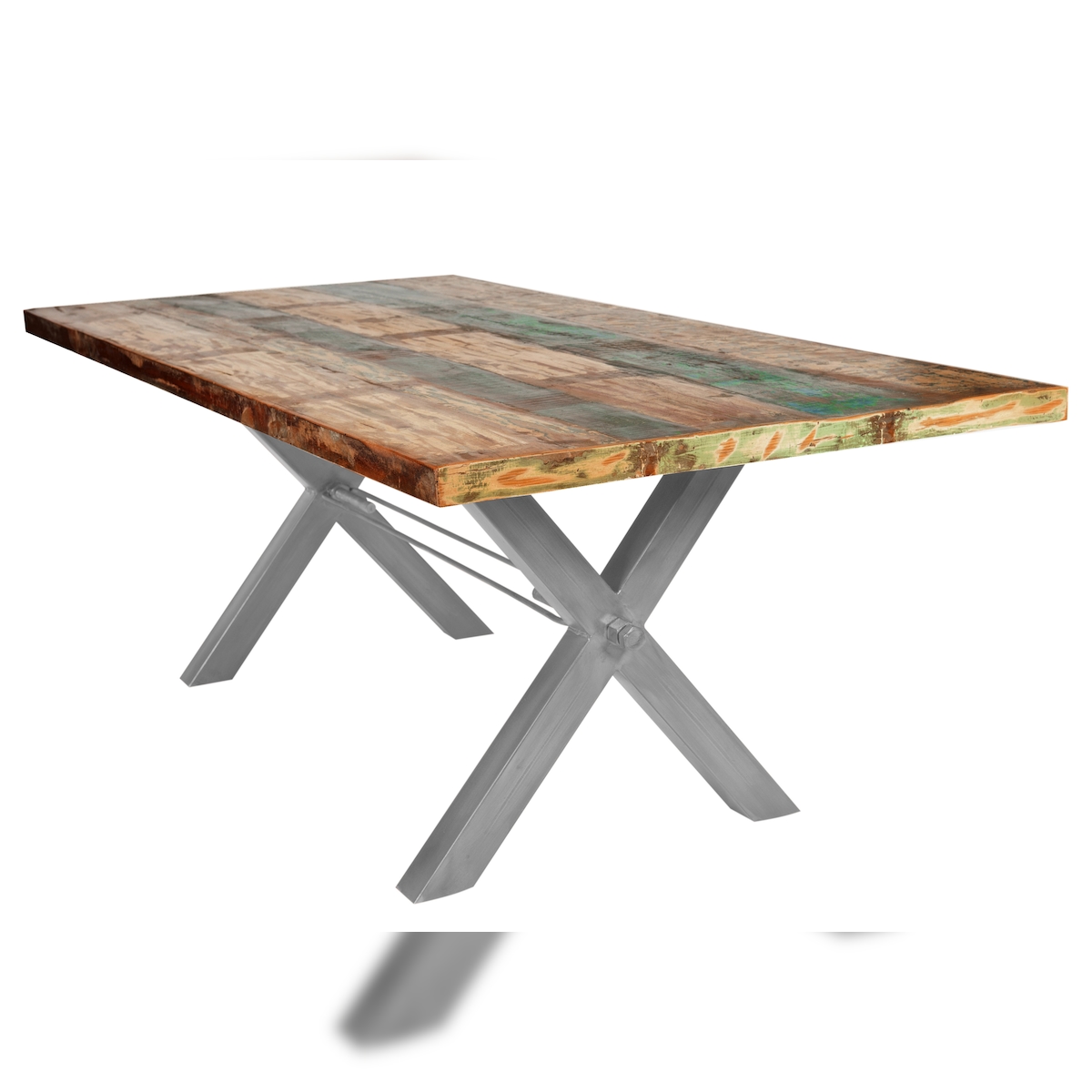 SIT Möbel Esstisch | 200 x 100 cm | Platte 40 mm Altholz bunt lackiert | X-Gestell silbern | B 200 x T 100 x H 76,5 cm | 15103-40 | Serie TABLES & CO