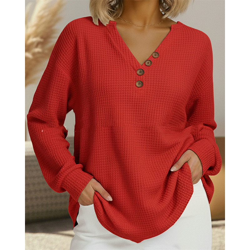 Women's Blouse Dressy Tops Plain Elegant Vintage Ladies Long Sleeve V Neck Regular Tops Work Daily Holiday Ruched Buttons Black White Red Royal Blue Fall Winter