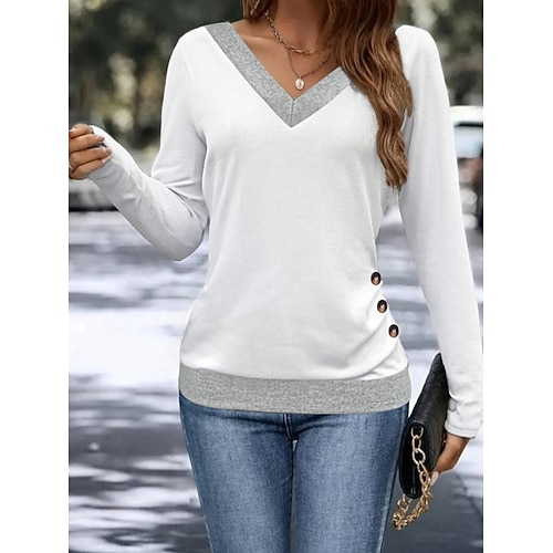 Per donna Blusa Tinta unica Elegante Casual Manica Lunga Scollo a V Top Regolari Quotidiano Patchwork Blu Nero Bianco Blu marino Estate Primavera Autunno