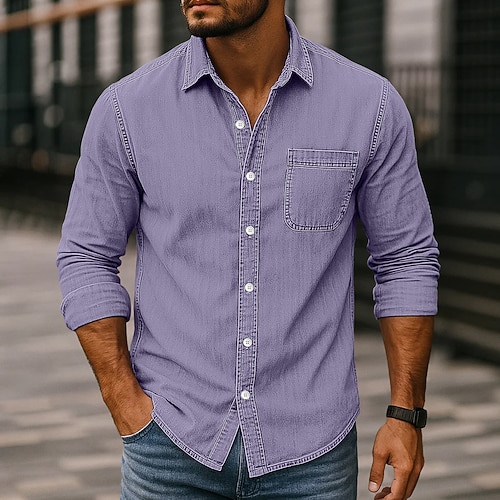 Per uomo Camicia Camicia casual Camicia vintage Camicia con Bottoni Nero Verde chiaro Vino Blu marino Blu Manica Lunga Semplice Bavero Casuale Uscire Tasca Abbigliamento Vintage Moda Retrò Vintage