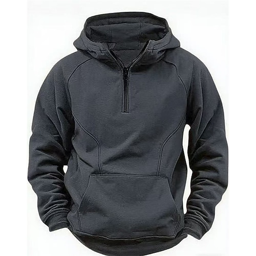 Per uomo Felpa con cappuccio Felpa con cappuccio e zip corta Nero Vino Verde militare Blu marino Cachi Con Cappuccio Semplice Tasca Mezza cerniera Sport Outdoor Quotidiano Ferie Poliestere
