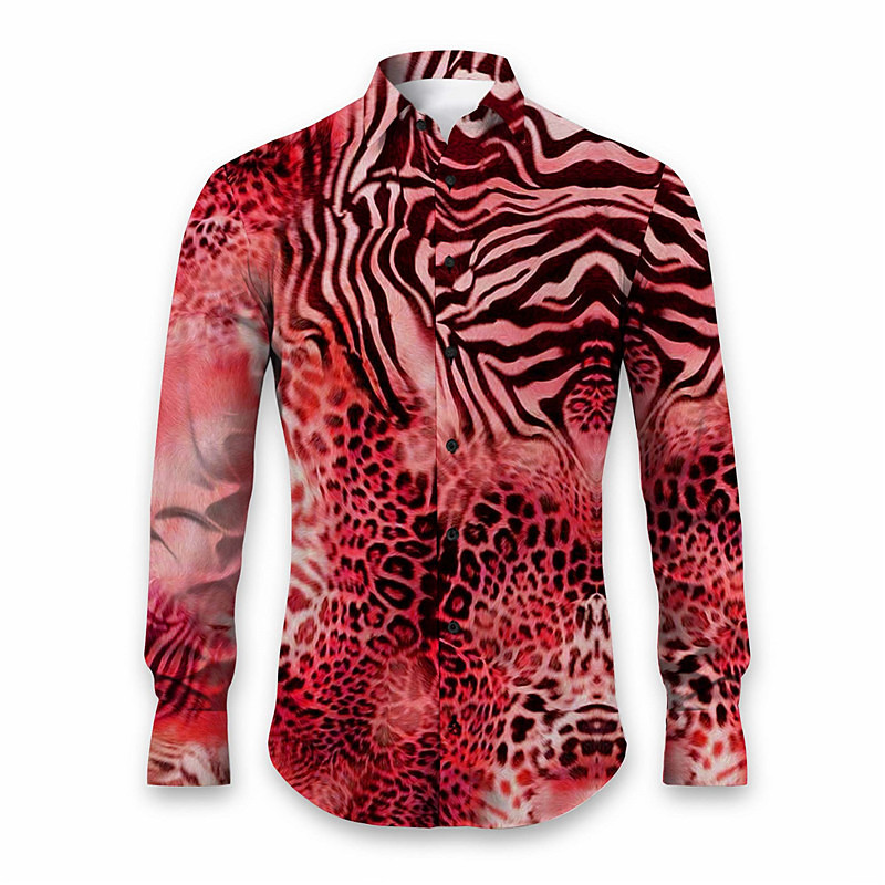 Men's Leopard Animal Fur Pattern Shirt Button Up Shirt Long Sleeve Abstract Daily Wear Going out Fall Winter Turndown Print Button-Down Yellow Pink Red Blue Purple