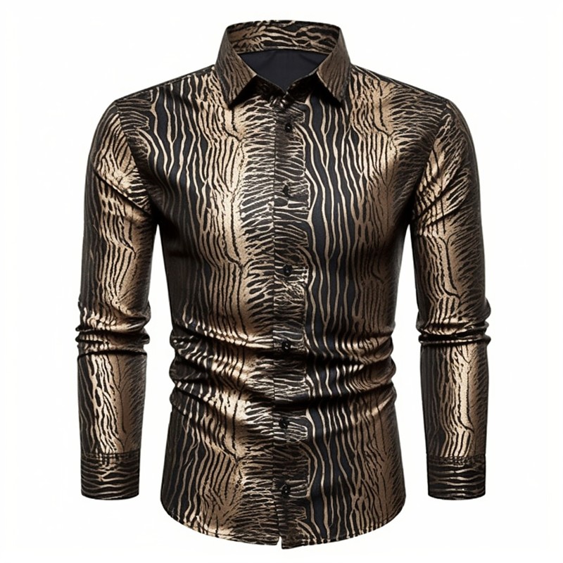 Men's Snake Metallic Shirt Button Up Shirt Long Sleeve Abstract Daily Wear Going out Fall Winter Turndown Print Button-Down Black Gold Brown Khaki