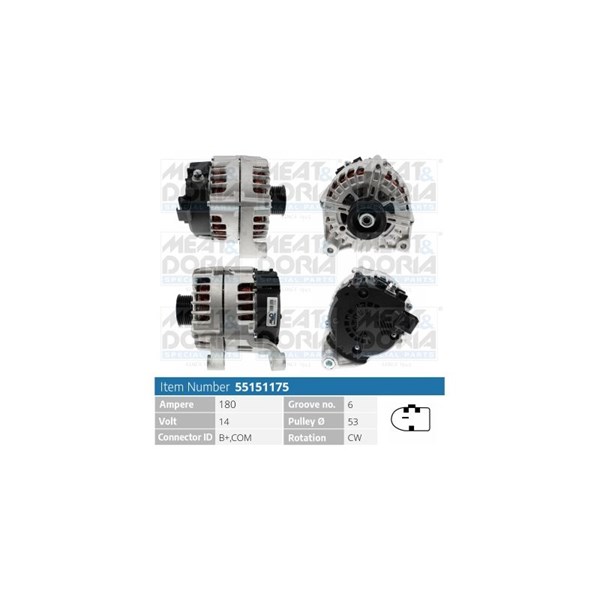 Laturi 14V 180A Meat & doria 55151175 - bmw x3 [f25] - OE 12318509739, 12318511454