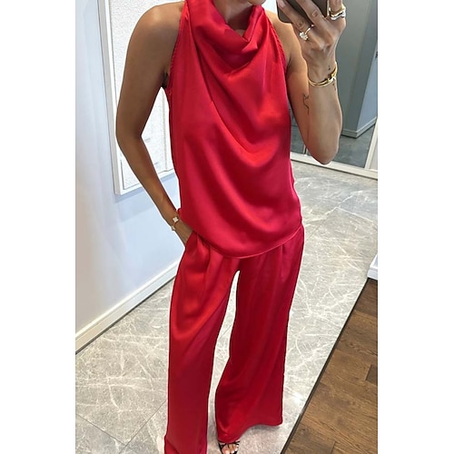 Per donna Set di Pantaloni Bolero Top Senza Maniche All'americana Tinta unica Arricciato Elegante Moda Streetwear All'aperto Feste Formale Nero Rosa Rosso Estate Vestibilità comoda