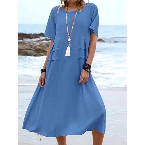 Per donna Abito Midi Finto cotone e lino Abito a Tubino Vestito Casual Abito estivo in cotone Essenziale Classico Casual Quotidiano All'aperto Vacanza Vestibilità comoda Semplice Manica 3/4 Scollo a