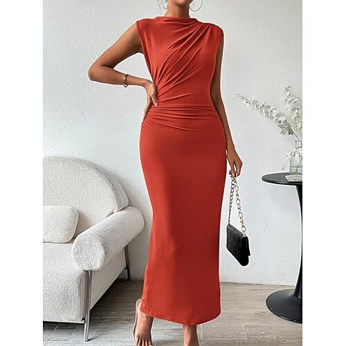Per donna Abito Lungo Maxi Abito Abito in Raso Vestito da Festa Abito da Cocktail Abito Sottoveste Elegante Moda Festa serale Feste Occasione speciale Vestibilità regolare Semplice Senza Maniche