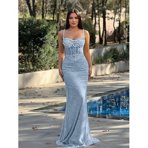 Sirena Tromba Lunghezza al pavimento Abiti da Ballo Abito da Sera Da principessa Abito formale Elegante Stile Celebrità Tappeto rosso Senza Maniche Senza Spalle Festa serale Festa in giardino Raso con