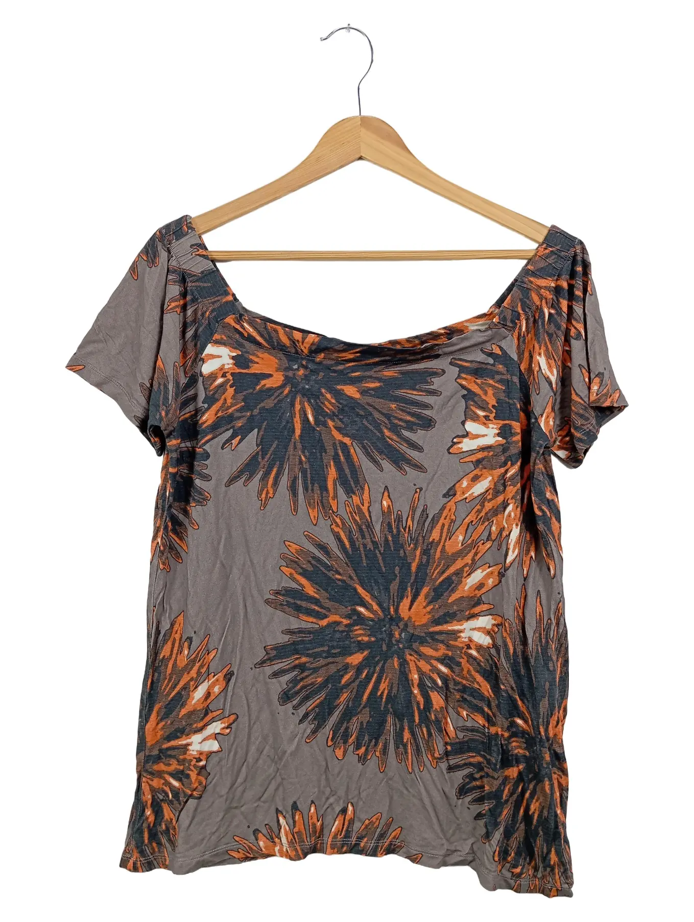 S.OLIVER Damen T-Shirt 44 Grau Orange Blumenmuster