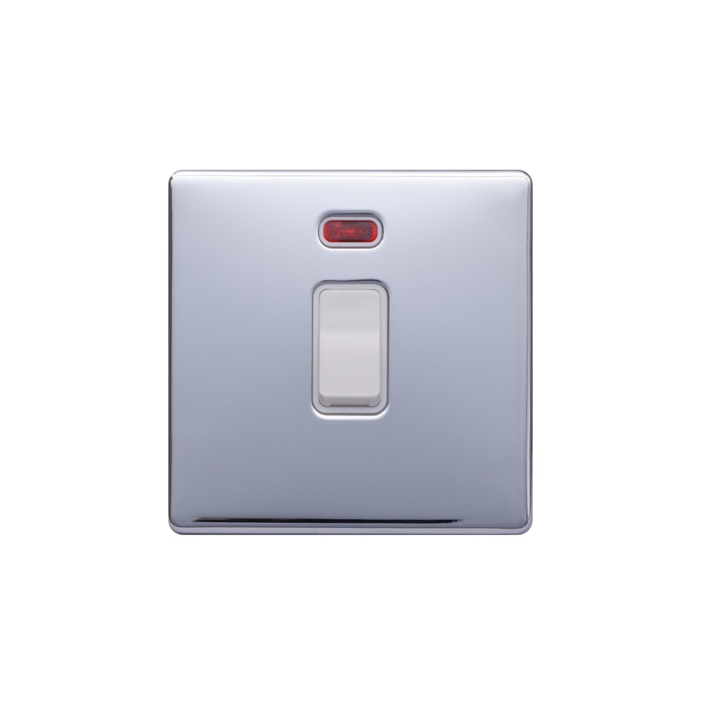 Lieber Polished Chrome 20A 1 Gang Double Pole Switch & Neon-White Insert Screwless - Size: 86mm x 86mm x 2.1 mm