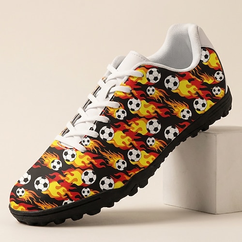 Scarpe da calcio da uomo con stampa a fiamme, allacciate, leggere, ideali per i tifosi dei Mondiali, per tifare allo stadio, per eventi sportivi, allenamenti e per il tempo libero.
