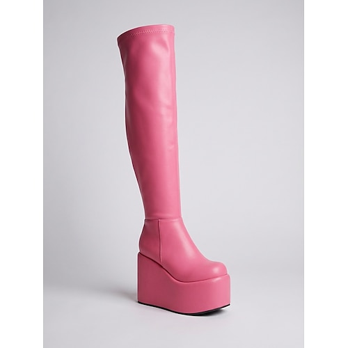 stivali gogo con plateau in vernice rossa da donna - tacchi alti fino alla coscia con chiusura a cerniera, stile retrò futuristico per feste, discoteche e costumi