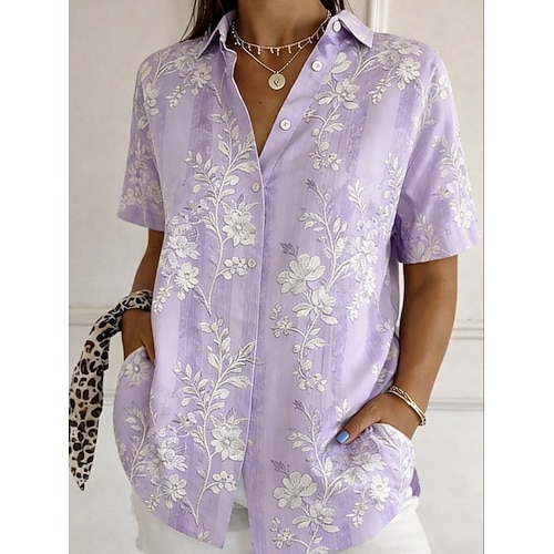 Per donna Camicia Camicia button-down Camicia casual Top estivi Bottoni Stampato Floreale Grafico Vintage Elegante Moderno Manica Corta Colletto a Camicia Top lunghi Quotidiano Verde chiaro Viola