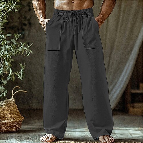 Per uomo Pantaloni di lino Pantaloni Pantaloni estivi Pantaloni da spiaggia Tasche A cordoncino Vita elastica Liscio Comfort Traspirante Giornaliero Per eventi Da mare Hawaiano Boho Marrone Scuro Nero