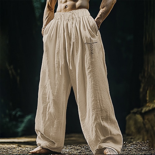 Per uomo Pantaloni di Lino Pantaloni Pantaloni Estivi Pantaloni da Spiaggia Coulisse Tasca Elastico in vita Semplice Comodità Traspirante Vacanza Quotidiano Ferie Hawaiano Boho Nero Bianco