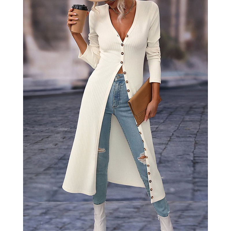 Women's Sweater Cardigan Casual Soft Pure Color Ribbed Open Front Knitted Long Sleeve Long Tops Knit Outdoor Daily Weekend Green Khaki Fall Winter