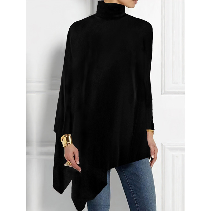 Women's Blouse Solid Color Stylish Basic Casual Long Sleeve Turtleneck Long Tops Daily Asymmetric Hem Black Wine Royal Blue Purple Spring Fall Winter