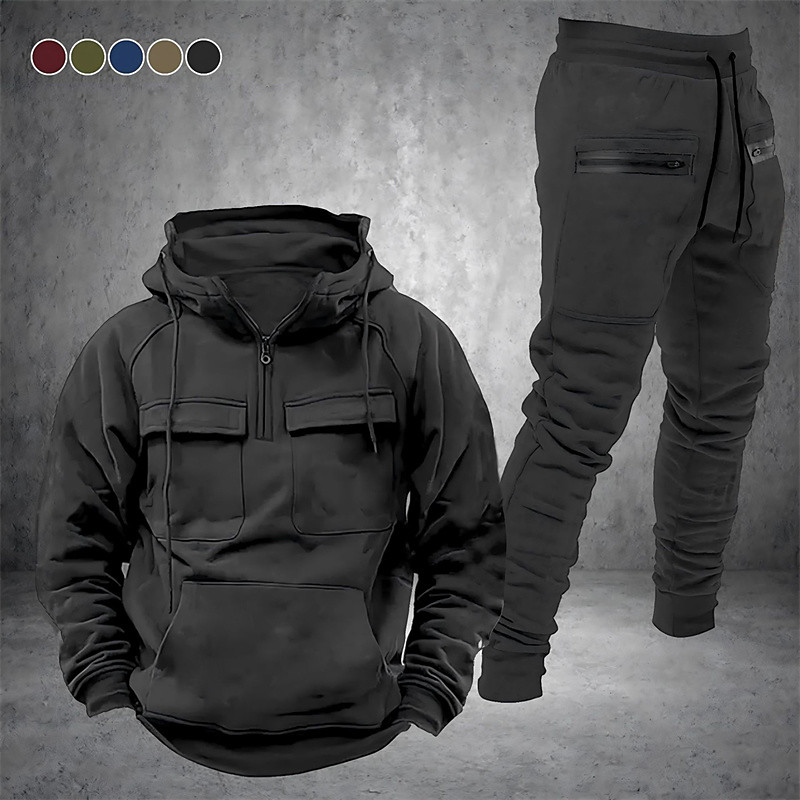 Men's Hoodie Tracksuit Sweatsuit Quarter Zip Hoodie Black Wine Navy Blue Hooded Plain Drawstring 2 Piece Front Pocket Sports Outdoor Daily Holiday Polyester Streetwear Basic Casual Fall Winter