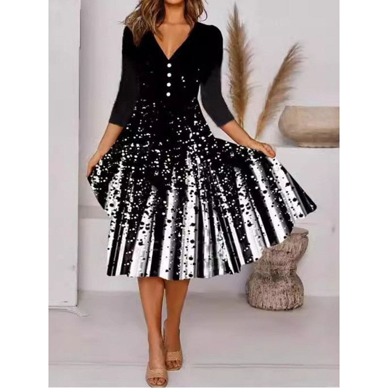 Women's Midi Dress A Line Dress Casual Outdoor Going out Standard Fit Floral Graphic 3/4 Length Sleeve V Neck Black White Red Spring Fall