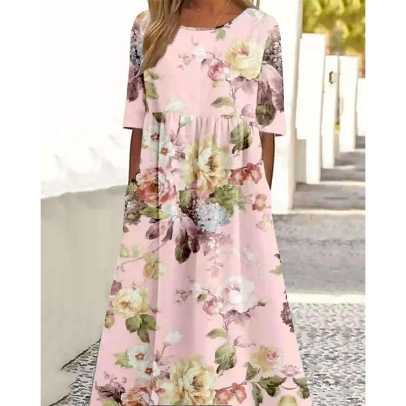 Women's Midi Dress Casual Dress Floral Dress Stylish Casual Outdoor Vacation Holiday Loose Fit Floral Leopard Pure Color Half Sleeve Crew Neck Black Purple Fuchsia Green Spring Fall Autumn